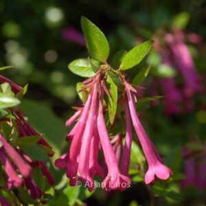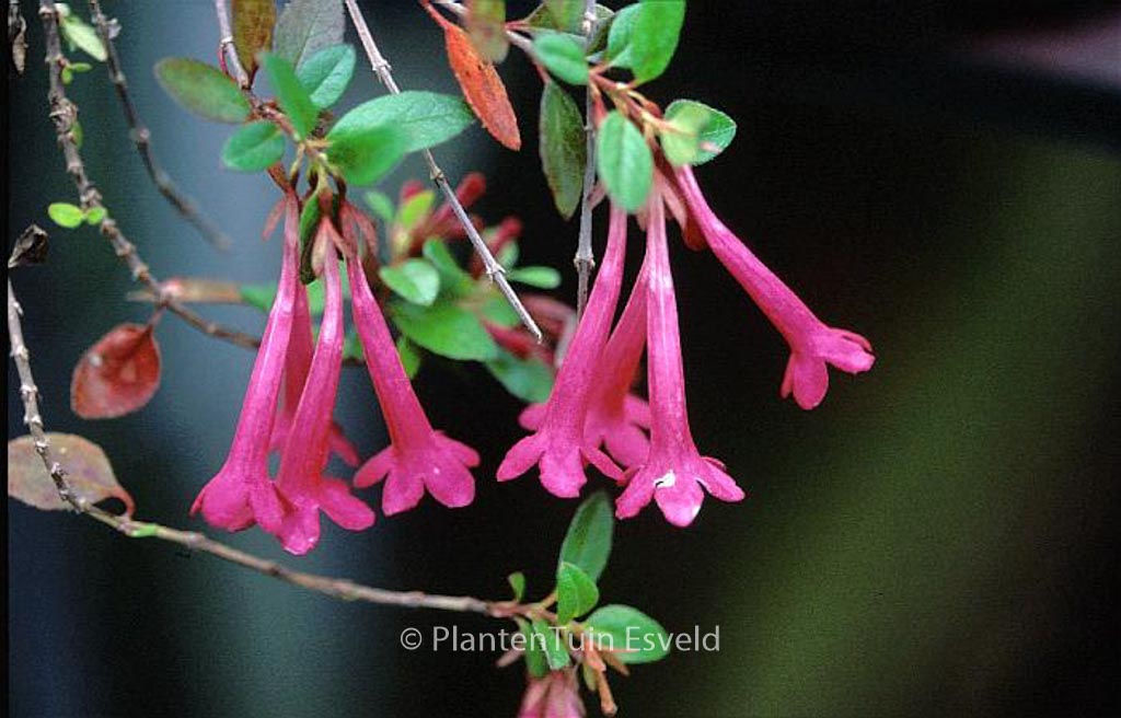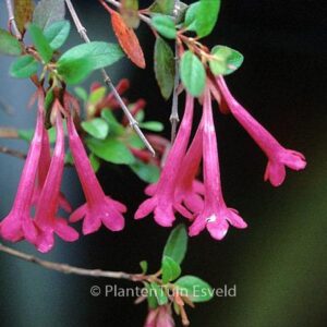 Breitwachsender Strauch mit Fuchsien-ähnlichen Blumen. Pflanzenhöhe n. 10 Jahren 100 cm. Die Blütenfarbe ist dunkelrosa. Die Blütezeit ist Juni – August. Diese Pflanze ist nicht sehr winterhart. . Ist anwesend in unsere Pflanzenladen. Bitte sehen Sie im Aktuelle Vorrat.