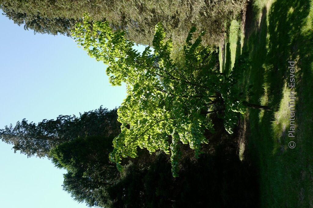 Junges Blatt lachsfarben;kleiner Baum mit guter Herbstfarbe. Pflanzenhöhe n. 10 Jahren 4 m. Diese Pflanze ist winterhart. Volksname : Lindenblättriger ahorn . . Nur auf Vorbestellung lieferbar.