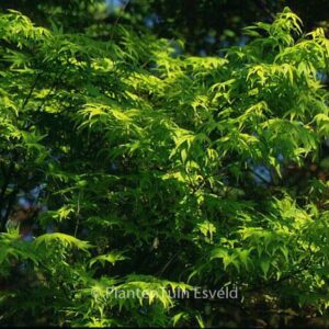 Aufrechter Wuchs, hellgrüne Winterzweige. Pflanzenhöhe n. 10 Jahren 4 Meter. Die Blattfarbe ist frischgrün. Die Blütezeit ist April – Mai. Diese Pflanze ist vollkommen winterhart. Anzahl pro Qm : 1. Volksname : Fächer-ahorn . Der japanische Name bedeutet: Grüne Weide . . Nur auf Vorbestellung lieferbar.