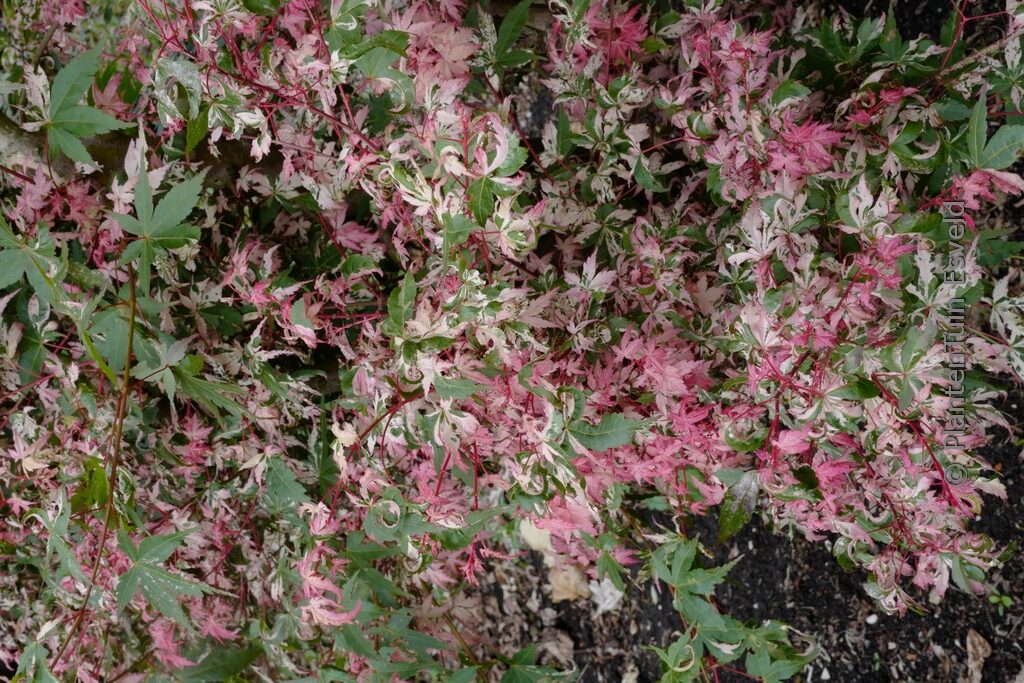 Schlank aufrechter Wuchs,rote Winterzweige, Blatt bunt. Pflanzenhöhe n. 10 Jahren 350 cm. Die Blattfarbe ist grün mit rosa und weiss. Die Blütezeit ist April – Mai. Diese Pflanze ist winterhart. Anzahl pro Qm : 1. Volksname : Fächer-ahorn . Der japanische Name bedeutet: Schwan in der aufgehenden Sonne Mögliche Alternativen : Acer palmatum ‚Oridono-nishiki‘. Wichtigster Unterschied: Acer palmatum ‚Oridono-nishiki‘ ist bonter, verläuft weniger. Acer palmatum ‚Rokugatsu-en-nishiki‘. Wichtigster Unterschied: Acer palmatum ‚Rokugatsu-en-nishiki‘ wächst etwas rustiger. . Nur auf Vorbestellung lieferbar. .