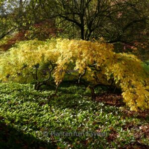 Rundlicher kleiner Baum,stark eingeschnittenes Blatt. Pflanzenhöhe n. 10 Jahren 2 m. Die Blattfarbe ist im Herbst orange, gelb und rot. Die Blütezeit ist Mai. Diese Pflanze ist winterhart. Anzahl pro Qm : 1. Volksname : Fächer-ahorn . . Nur auf Vorbestellung lieferbar.