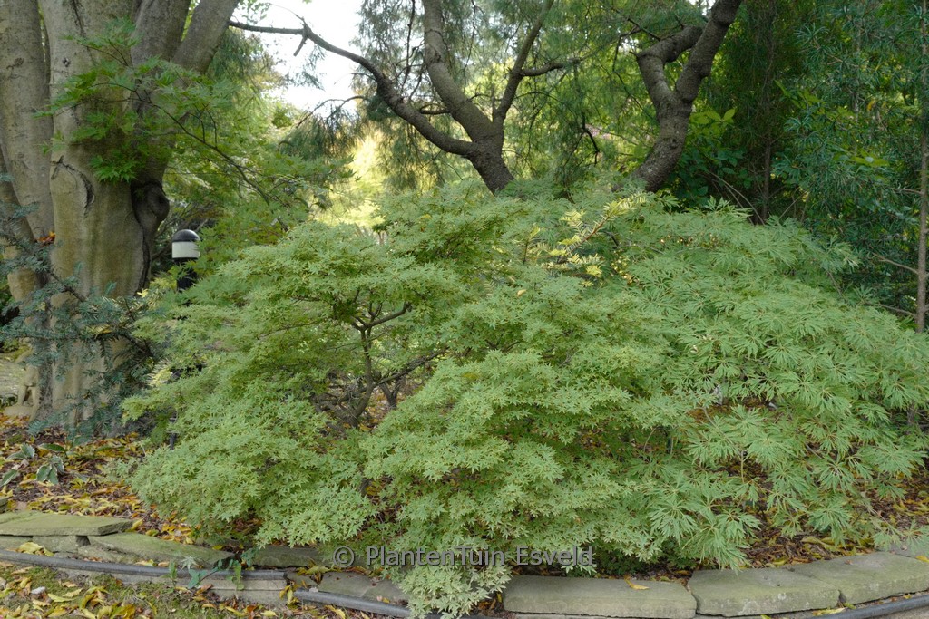 Sehr kleinblättriger Strauch, kugeliger Habitus; Bonsai. Pflanzenhöhe n. 10 Jahren 1 Meter. Die Blattfarbe ist grün. Die Blütezeit ist Mai. Diese Pflanze ist winterhart. Anzahl pro Qm : 1. Volksname : Fächer-ahorn Mögliche Alternative : Acer palmatum ‚Hanami-nishiki‘. Wichtigster Unterschied: Acer palmatum ‚Eimini‘ etwas opgaandere Form. Ist anwesend in unsere Pflanzenladen. Bitte sehen Sie im Aktuelle Vorrat.