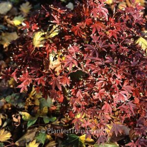 Kompakte Zwergform, hellrote Herbstfarbe. Pflanzenhöhe n. 10 Jahren 150 Zm. Die Blattfarbe ist im Sommer dunkelpurpur-rot. Diese Pflanze ist winterhart. Anzahl pro Qm : 1. Volksname : Fächer-ahorn Mögliche Alternativen : Acer palmatum ‚Brandt’s Dwarf‘. Wichtigster Unterschied: Acer palmatum ‚Brandt’s Dwarf‘ etwas vlotter wachsend. Acer palmatum ‚Carlis Corner Broom‘. Wichtigster Unterschied: wenig Unterschied. Acer palmatum ‚Royle‘. Wichtigster Unterschied: wenig Unterschied. Ist anwesend in unsere Pflanzenladen. Bitte sehen Sie im Aktuelle Vorrat.