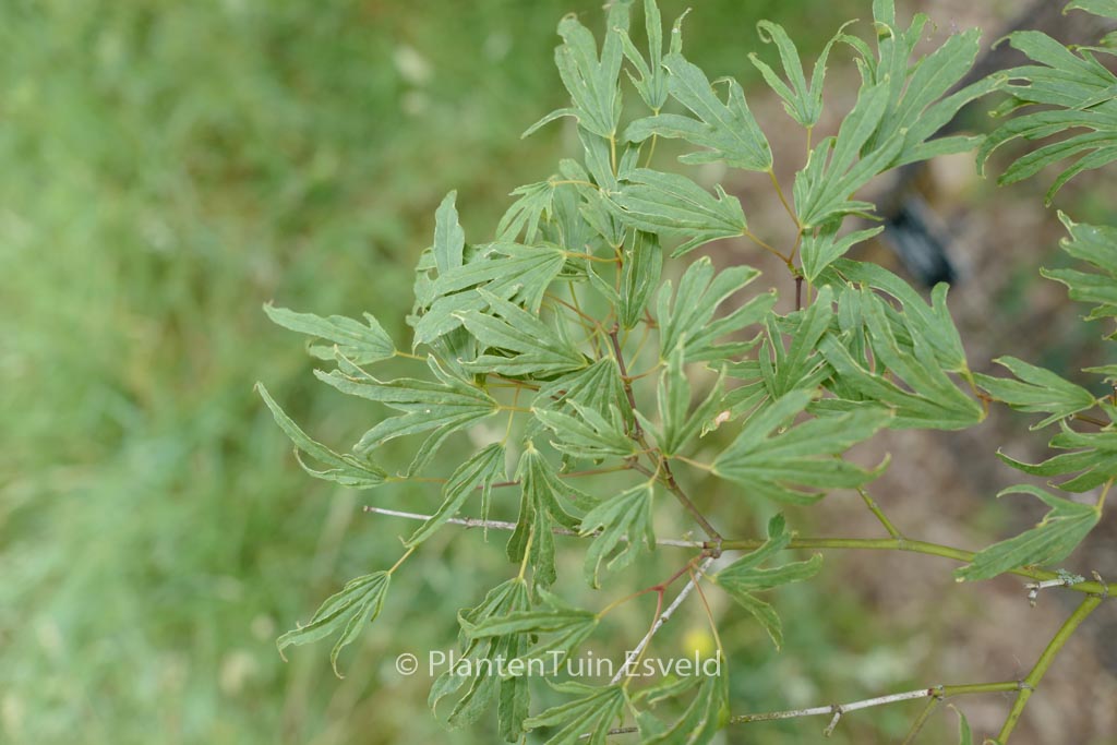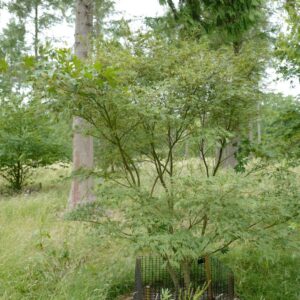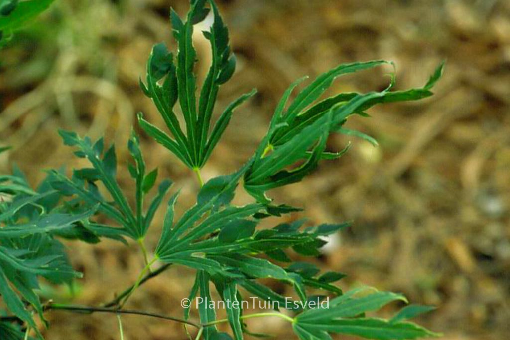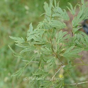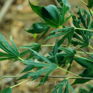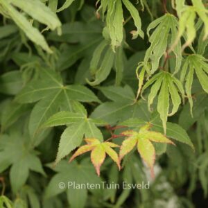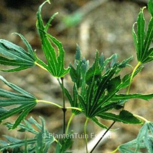 Besonders geformtes Blatt, Herbstfarbe orange, Wuchs aufrecht. Pflanzenhöhe n. 10 Jahren 250 cm. Die Blattfarbe ist grün mit etwas weiss. Die Blütezeit ist Mai. Diese Pflanze ist winterhart. Anzahl pro Qm : 1. Volksname : Fächer-ahorn . Der japanische Name bedeutet: Feuerdrache . Ist in die Baumschule anwesend, aber muss vorbestellt werden.