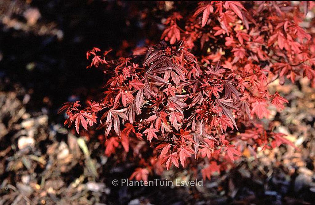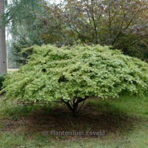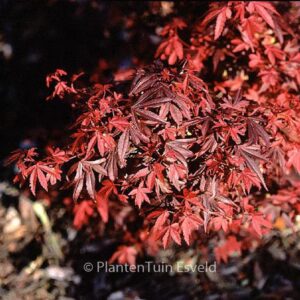 Zwergform, dicht verzweigtHexenbesen. Pflanzenhöhe n. 10 Jahren 150 Cm. Die Blattfarbe ist rot mit grüne ondertoon. Die Blütezeit ist Mai. Diese Pflanze ist winterhart. Anzahl pro Qm : 1. Volksname : Fächer-ahorn . . Nur auf Vorbestellung lieferbar.