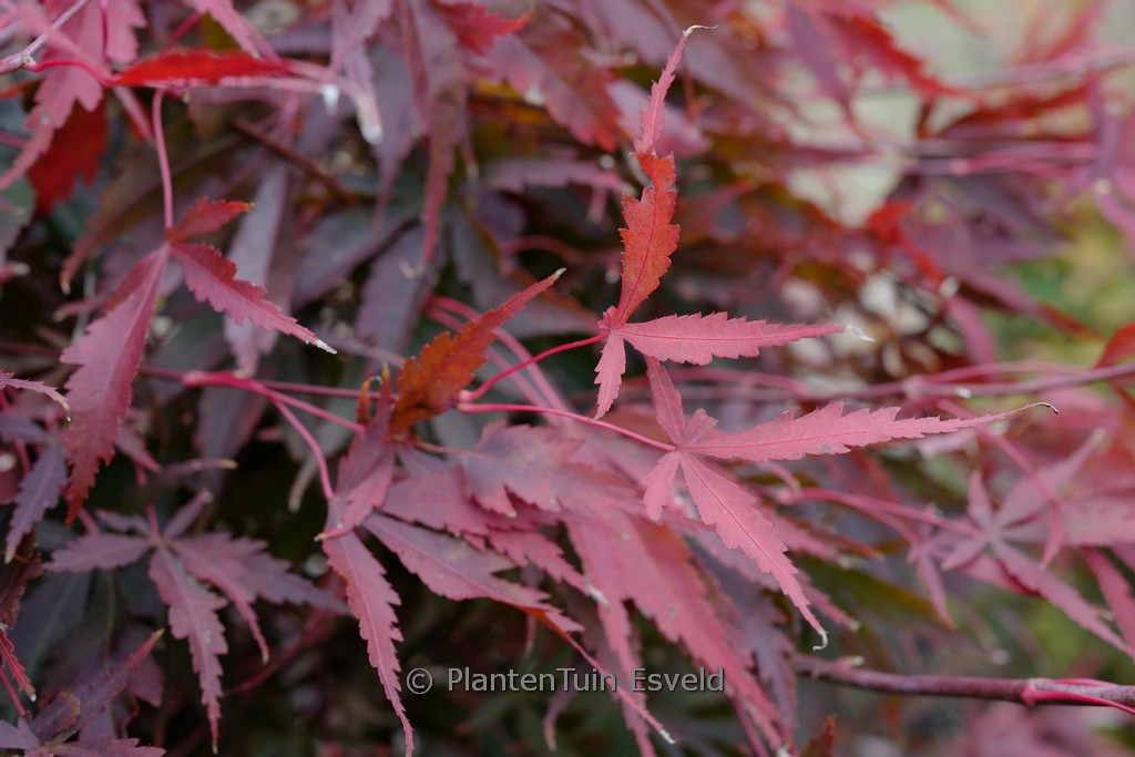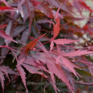 Austrieb braun/gelb-orange Herbstf. orange-rot; breiter Wuchs. Pflanzenhöhe n. 10 Jahren 2,5 meter. Die Blattfarbe ist im Sommer dunkelgrün. Die Blütezeit ist Mai. Diese Pflanze ist vollkommen winterhart. Anzahl pro Qm : 1. Volksname : Fächer-ahorn . Der japanische Name bedeutet: Pinienbaum im Wind (ausserdem der Name der Prinzessin / Titel No Theaterstück) Mögliche Alternative : Acer palmatum ‚Nicholsonii‘. Wichtigster Unterschied: Acer palmatum ‚Nicholsonii‘ Blatt mehr olijfkleurig. Ist anwesend in unsere Pflanzenladen. Bitte sehen Sie im Aktuelle Vorrat.