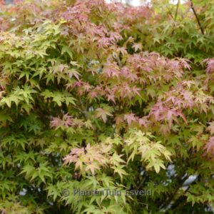 Schöner kontrastierender roter Blattrand! Ruhiger Wuchs. Pflanzenhöhe n. 10 Jahren 75 cm. Die Blattfarbe ist gelbgrün, im Herbst gelb. Die Blütezeit ist Mai. Diese Pflanze ist winterhart. Anzahl pro Qm : 1. Volksname : Fächer-ahorn Mögliche Alternative : Acer palmatum ‚Oto hime‘. Wichtigster Unterschied: Acer palmatum ‚Murasaki-kiyohime‘ rote Blattspitzen. Ist anwesend in unsere Pflanzenladen. Bitte sehen Sie im Aktuelle Vorrat.