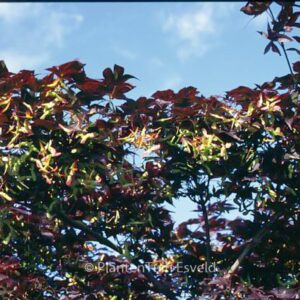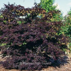 Kleiner, aufrechter Baum; Blatt schwarzrot; rote Herbstfarbe. Pflanzenhöhe n. 10 Jahren 2,5 m. Die Blütezeit ist Mai. Diese Pflanze ist vollkommen winterhart. Anzahl pro Qm : 1. Volksname : Fächer-ahorn Mögliche Alternative : Acer palmatum ‚Nure-sagi‘. Wichtigster Unterschied: Acer palmatum ‚Nure-sagi‘ wird grösser. Ist anwesend in unsere Pflanzenladen. Bitte sehen Sie im Aktuelle Vorrat. .