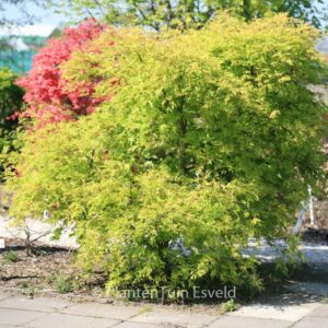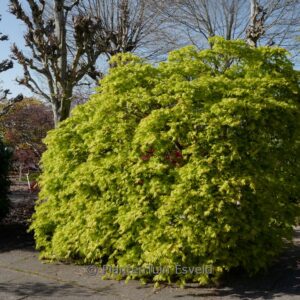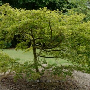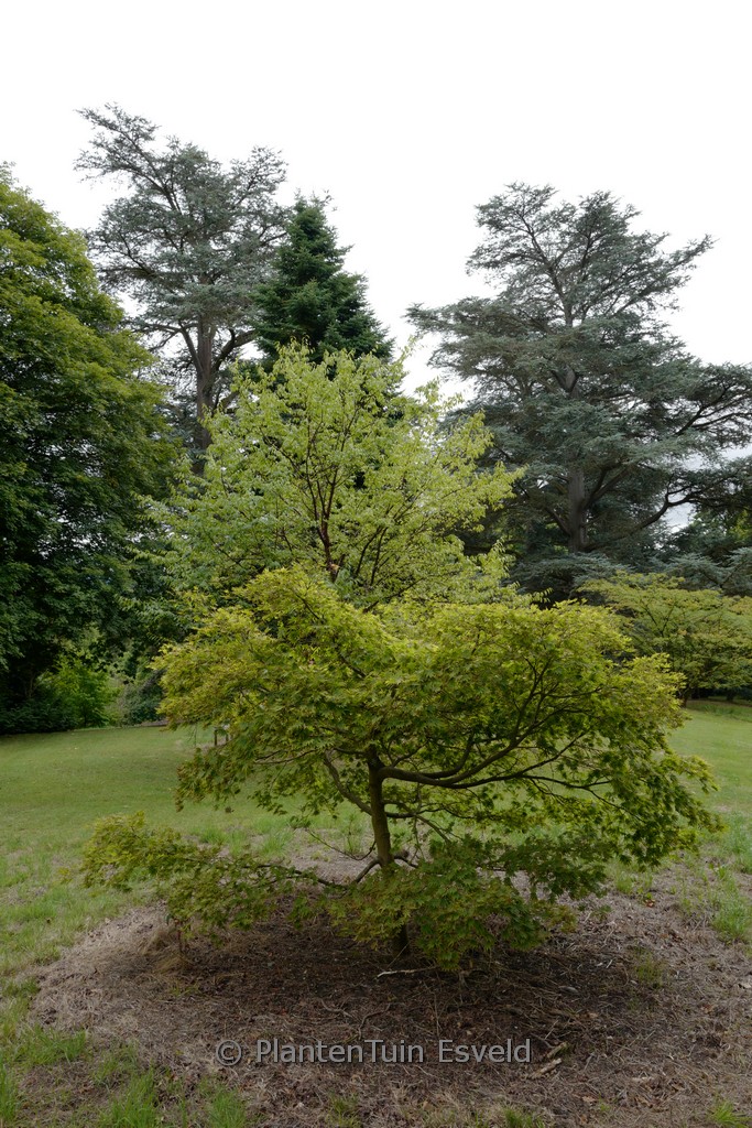 Austrieb zartgrün, Herbstfarbe strahlend rot. Pflanzenhöhe n. 10 Jahren 200 Zm. Die Blattfarbe ist im Sommer mittelgrün. Die Blütezeit ist Mai. Diese Pflanze ist vollkommen winterhart. Anzahl pro Qm : 1. Volksname : Fächer-ahorn . . Nur auf Vorbestellung lieferbar.