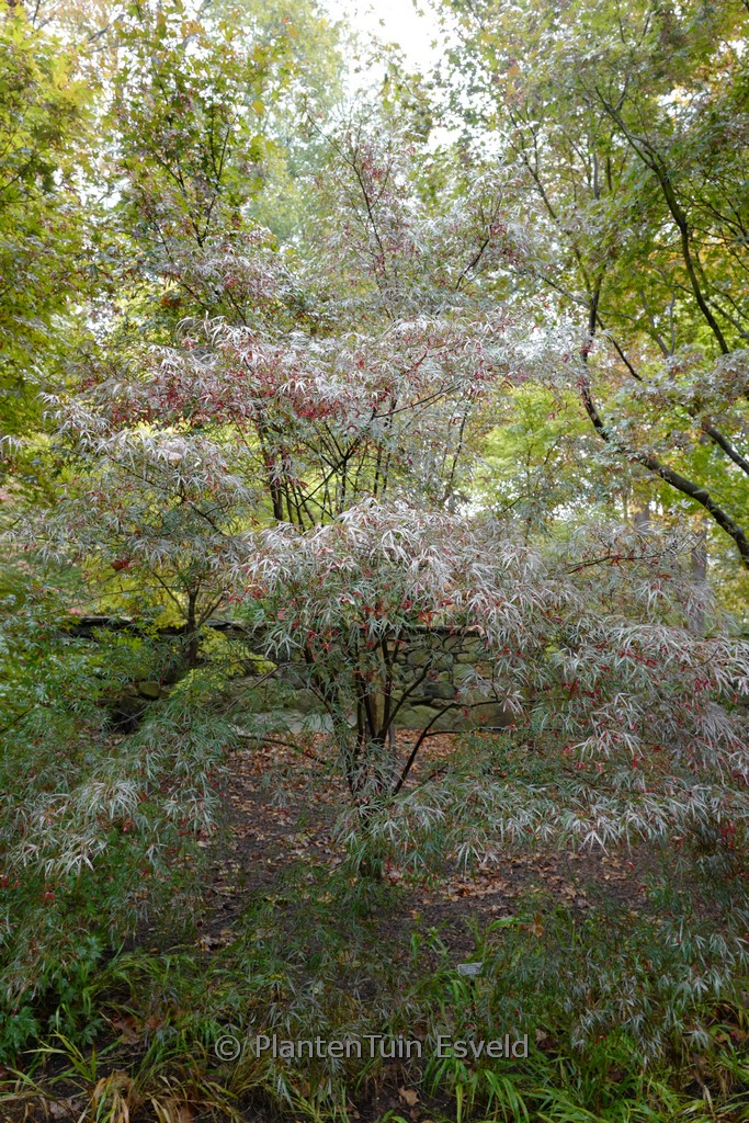 Blatt fadenförmig, Herbstfarbe rot, feine elegante Sorte. Pflanzenhöhe n. 10 Jahren 150 cm. Die Blattfarbe ist im Sommer rotpurpur. Die Blütezeit ist Mai. Diese Pflanze ist winterhart. Anzahl pro Qm : 1. Volksname : Fächer-ahorn Mögliche Alternativen : Acer palmatum ‚Atrolineare‘. Wichtigster Unterschied: Acer palmatum ‚Pung Kill‘ wächst etwas schneller. Acer palmatum ‚Beni-ohtake‘. Wichtigster Unterschied: wenig Unterschied. Acer palmatum ‚Enkan‘. Wichtigster Unterschied: Acer palmatum ‚Enkan‘ etwas dunkler rot. Acer palmatum ‚Red Pygmy‘. Wichtigster Unterschied: Acer palmatum ‚Red Pygmy‘ etwas heller rot. . . Nur auf Vorbestellung lieferbar.