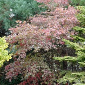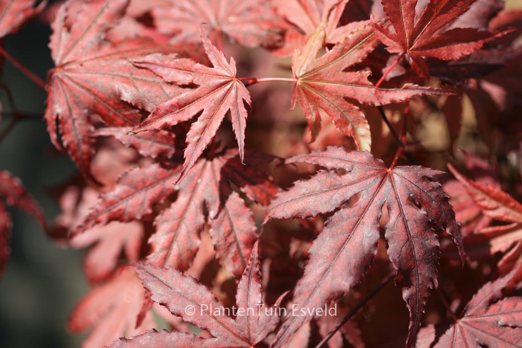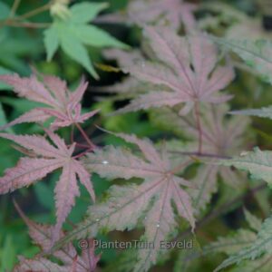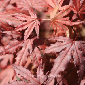 Frühjahrsblatt rosa geadert, Herbstfarbe rot. Pflanzenhöhe n. 10 Jahren 2 Meter. Die Blattfarbe ist im Sommer dunkelpurpur-rot. Die Blütezeit ist Mai. Diese Pflanze ist winterhart. Anzahl pro Qm : 1. Volksname : Fächer-ahorn Mögliche Alternative : Acer palmatum ‚Beni-shigatatsu-sawa‘. Wichtigster Unterschied: Acer palmatum ‚Purple Ghost‘ liebt Farbe länger fest. . . Nur auf Vorbestellung lieferbar.