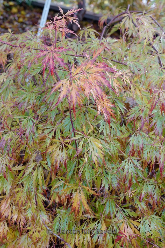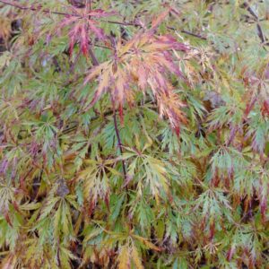 Amerikanische Selektion aus der Dissectum-Gruppe, Herbstfarbe. Pflanzenhöhe n. 10 Jahren 150 cm. Die Blattfarbe ist im Sommer grün. Die Blütezeit ist Mai. Diese Pflanze ist winterhart. Anzahl pro Qm : 1. Volksname : Fächer-ahorn . Ist anwesend in unsere Pflanzenladen. Bitte sehen Sie im Aktuelle Vorrat.