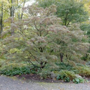 Tiefeingeschnittenes Blatt; Herbstfarbe rötlich orange. Pflanzenhöhe n. 10 Jahren 200 cm. Die Blattfarbe ist im Sommer bränlich rot. Die Blütezeit ist Mai. Diese Pflanze ist winterhart. Anzahl pro Qm : 1. Volksname : Fächer-ahorn . Ist anwesend in unsere Pflanzenladen. Bitte sehen Sie im Aktuelle Vorrat.
