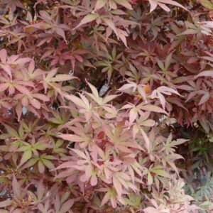 Austrieb glänzend rotbraun, Herbstfarbe rot-orange. Pflanzenhöhe n. 10 Jahren 200 cm. Die Blattfarbe ist braunviolett, neue Triebe rot. Die Blütezeit ist Mai. Diese Pflanze ist vollkommen winterhart. Anzahl pro Qm : 1. Volksname : Fächer-ahorn Mögliche Alternative : Acer palmatum ‚Pixie‘. Wichtigster Unterschied: Acer palmatum ‚Skeeter’s Broom‘ wächst etwas stijler aufrech. Ist anwesend in unsere Pflanzenladen. Bitte sehen Sie im Aktuelle Vorrat. . . . . . .
