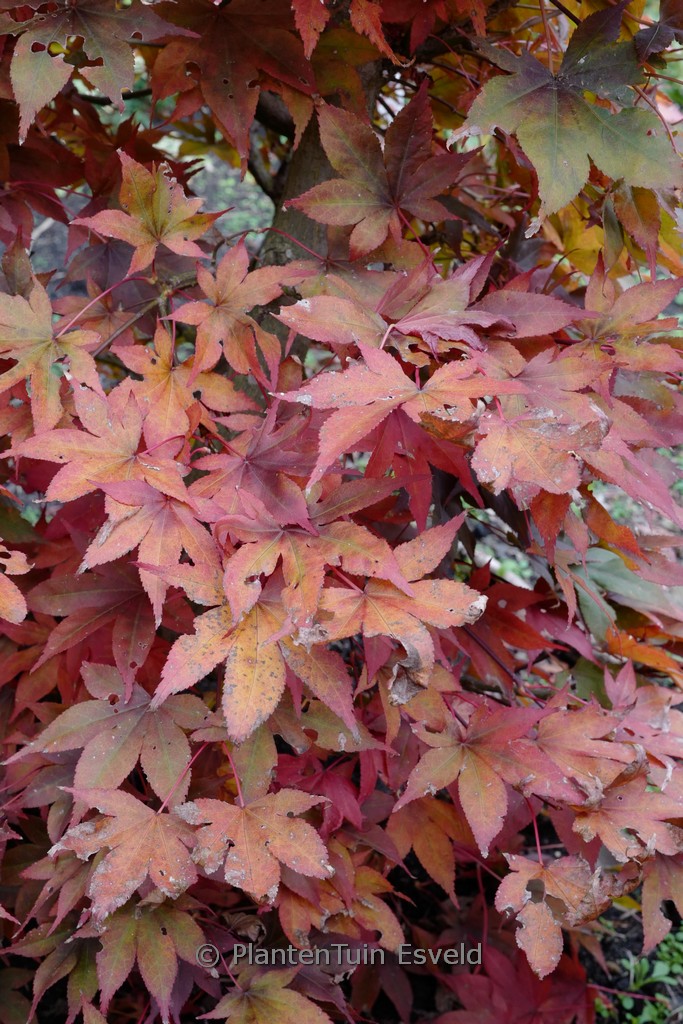 Grosses, breites Blatt; Herbstfarbe rot. Pflanzenhöhe n. 10 Jahren 2,5 meter. Die Blattfarbe ist im Sommer tief rotbraun. Die Blütezeit ist Mai. Diese Pflanze ist winterhart. Anzahl pro Qm : 1. Volksname : Fächer-ahorn . Ist anwesend in unsere Pflanzenladen. Bitte sehen Sie im Aktuelle Vorrat.