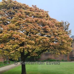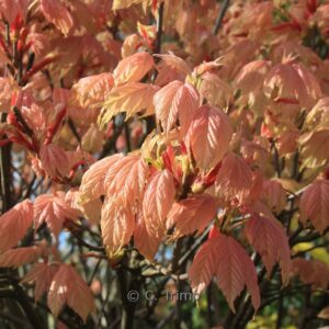Im Austrieb rosa-gelborange; kleiner, kompakter Baum. Pflanzenhöhe n. 10 Jahren 3 Meter. Die Blattfarbe ist im Sommer hellgrün. Die Blütezeit ist April. Diese Pflanze ist vollkommen winterhart. Anzahl pro Qm : 1. Volksname : Bergahorn Mögliche Alternative : Acer pseudoplatanus ‚Prinz Handjery‘. Wichtigster Unterschied: Acer palmatum ‚Hanzell‘ etwas grösser, Unterseite Blat. Diese Pflanze hat die folgende Auszeichnung: AGM, Award of Garden Merit, 1993. . Nur auf Vorbestellung lieferbar.