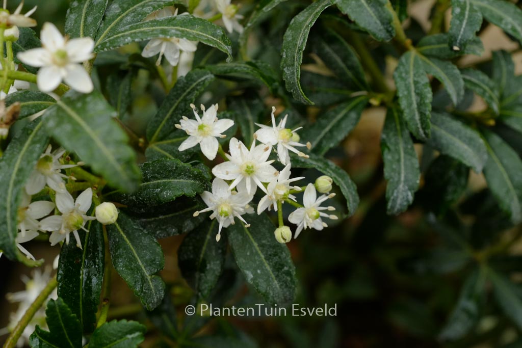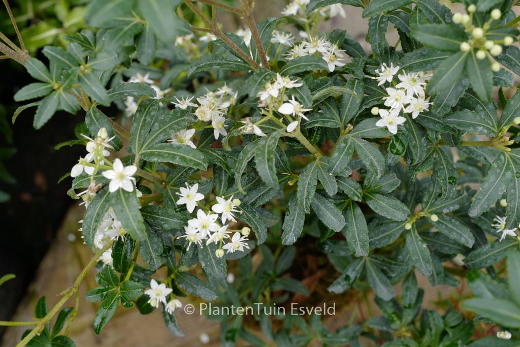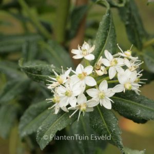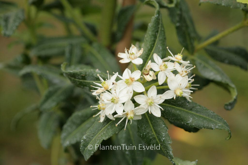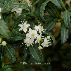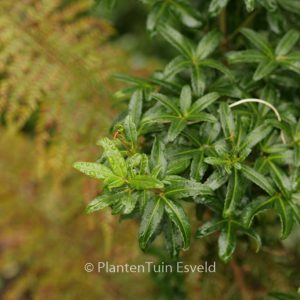 Wintergrüner Strauchaus Tasmanien; Blatt glänzend. Pflanzenhöhe n. 10 Jahren 1,5 m. Die Blütenfarbe ist weiss. Die Blütezeit ist April – Mai. Diese Pflanze ist nicht sehr winterhart. Anzahl pro Qm : 3. . Nur auf Vorbestellung lieferbar.