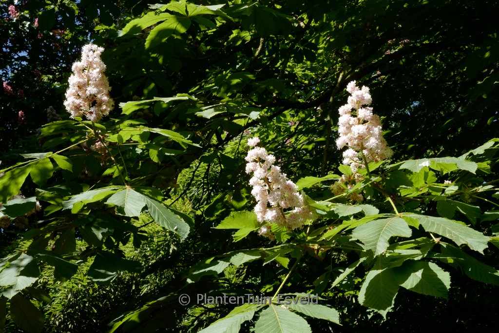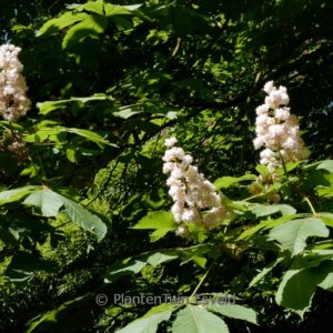 Strassenbaum mit grossen, gefüllten, sterielen Blumen. Pflanzenhöhe n. 10 Jahren 5 Meter. Die Blütenfarbe ist rosaweiss. Die Blütezeit ist April – Mai. Diese Pflanze ist vollkommen winterhart. Anzahl pro Qm : 1. Volksname : Rosskastanie . Ist anwesend in unsere Pflanzenladen. Bitte sehen Sie im Aktuelle Vorrat. .