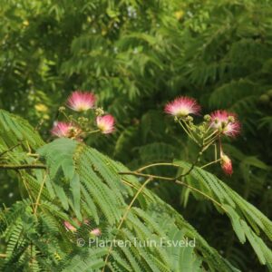 Mediterranes Bäumchen für warmen Standort. Pflanzenhöhe n. 10 Jahren 4 meter. Die Blütenfarbe ist rosa. Die Blütezeit ist Juli – August. Diese Pflanze ist nicht sehr winterhart. Anzahl pro Qm : 1. Volksname : Seidenbaum . Der Ausfall bei Albizia kann besonders gross sein, wir können die Verantwortung dafür nicht übernehmen. Mögliche Alternative : Albizia julibrissin. Wichtigster Unterschied: Albizia julibrissin ‚Rosea‘ dunkler Blume besser winterhart. Diese Pflanze hat die folgende Auszeichnung: AGM, Award of Garden Merit, 1993. Ist anwesend in unsere Pflanzenladen. Bitte sehen Sie im Aktuelle Vorrat.