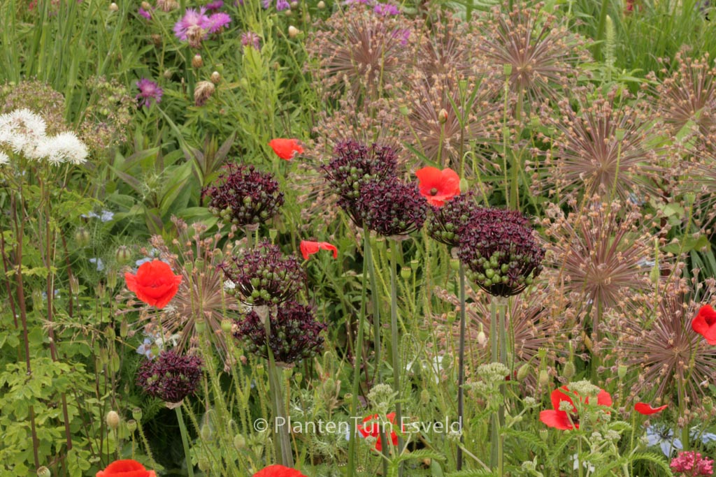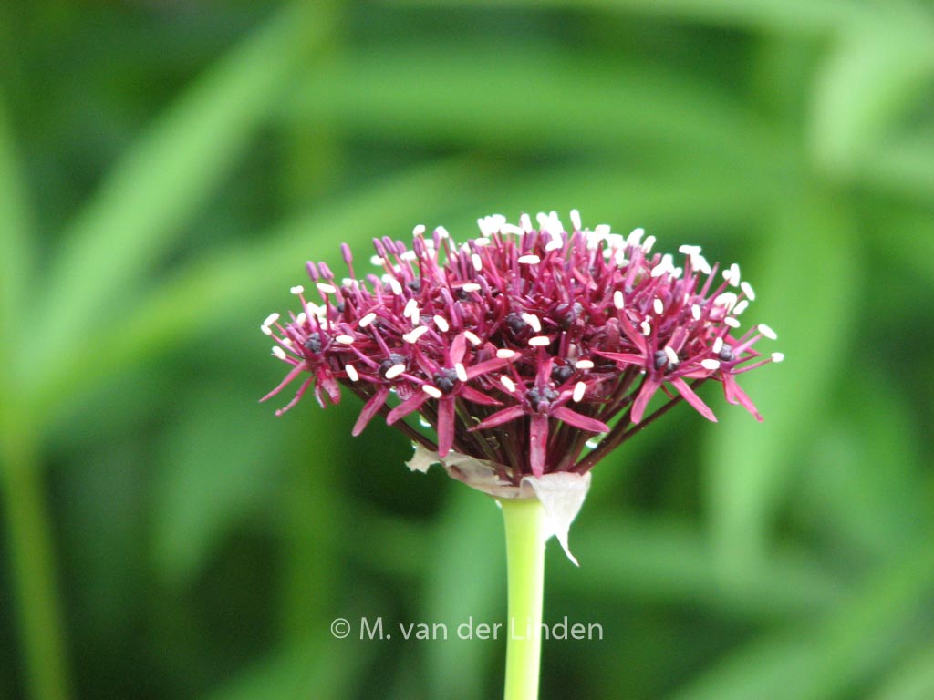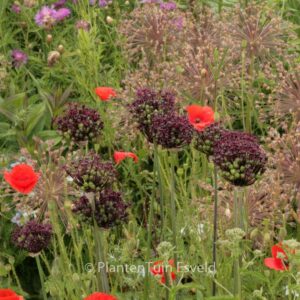 Granat-Kugellauch;sternförmige Einzelblüten. Pflanzenhöhe rund 80 cm. Die Blütenfarbe ist dunkelweinrot. Die Blütezeit ist Juni – Juli. Diese Pflanze ist vollkommen winterhart. Anzahl pro Qm : 11. . Nur auf Vorbestellung lieferbar.