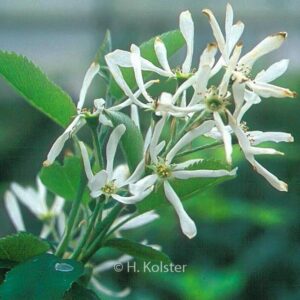 Problemloser Strauch ausdem südlichen Alpengebiet. Pflanzenhöhe n. 10 Jahren 3 meter. Die Blütenfarbe ist weiss. Die Blütezeit ist April – Mai. Diese Pflanze ist vollkommen winterhart. . . Nur auf Vorbestellung lieferbar.