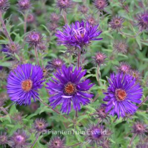 Kompakterer Wuchs; sehrschöne dunkle Blütenfarbe. Pflanzenhöhe rund 110 cm. Die Blütenfarbe ist tief violett. Die Blütezeit ist September – Oktober. Diese Pflanze ist vollkommen winterhart. Anzahl pro Qm : 7. Volksname : Raublattaster . . Nur auf Vorbestellung lieferbar.