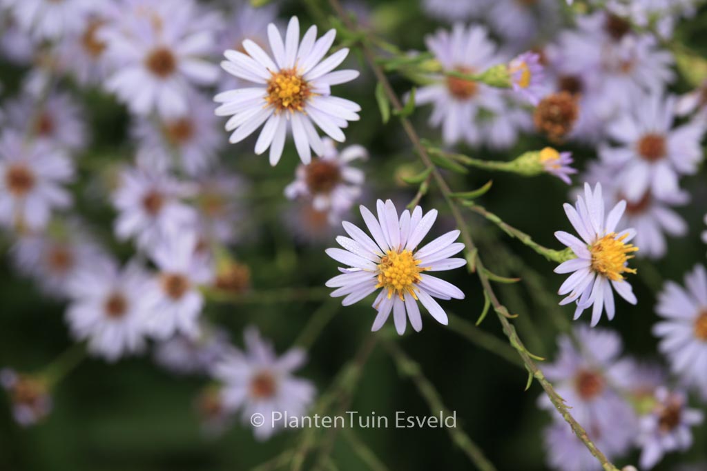 Sehr anmutige, luftige Prärie-Aster; üppig; robust. Pflanzenhöhe rund 1,5 m. Die Blütenfarbe ist hellblau. Die Blütezeit ist Oktober – November. Diese Pflanze ist vollkommen winterhart. Anzahl pro Qm : 7. . Nur auf Vorbestellung lieferbar.