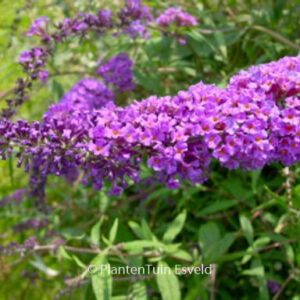 Relativ niedrigbleibender Schmetterlingsstrauch. Pflanzenhöhe n. 10 Jahren 150 cm. Die Blütenfarbe ist lilarot. Die Blütezeit ist Juli – September. Diese Pflanze ist vollkommen winterhart. Anzahl pro Qm : 1. Volksname : Sommerflieder Mögliche Alternative : Buddleja davidii nanhoensis. Wichtigster Unterschied: Buddleja davidii ‚Nanho Purple‘ ist dunkler von Farbe. Diese Pflanze hat die folgende Auszeichnung: AGM, Award of Garden Merit, 2002, dazu Getuigschrift van Verdienste von der KVBC Niederlande 1980. Ist anwesend in unsere Pflanzenladen. Bitte sehen Sie im Aktuelle Vorrat.