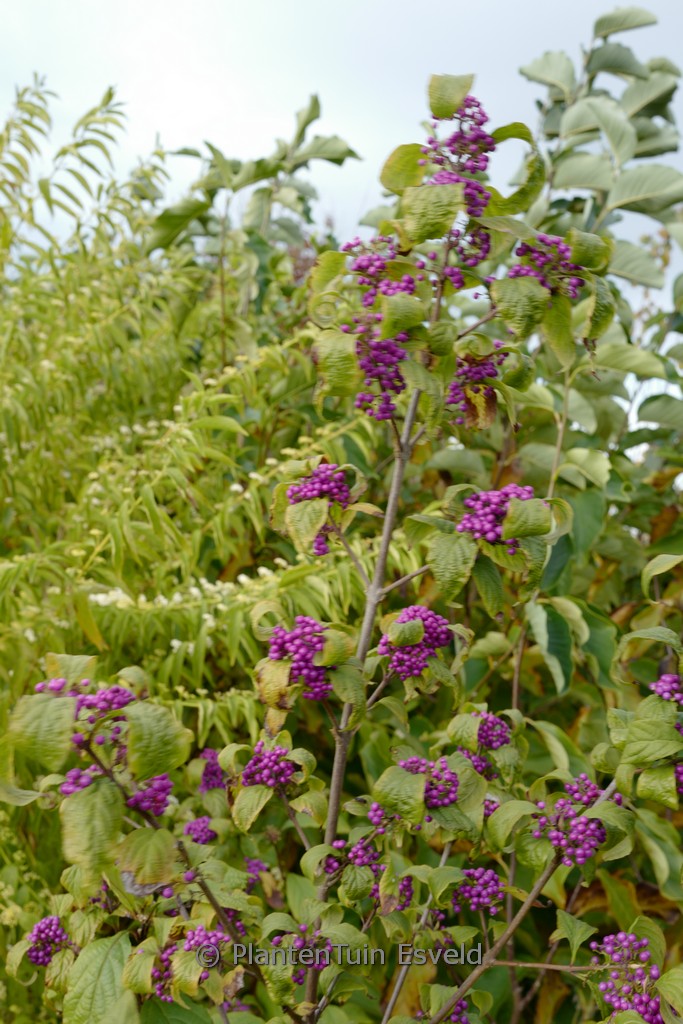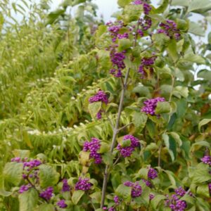 Buntblättrige Form der japanischen Schönfrucht. Pflanzenhöhe n. 10 Jahren 150 cm. Die Beerenfarbe ist violett. Die Fruchtzeit ist September – November. Diese Pflanze ist winterhart. Anzahl pro Qm : 1. Ist in die Baumschule anwesend, aber muss vorbestellt werden. .