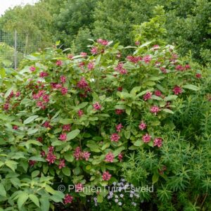 Grosse, angenehm duftendeBlüten; breiter Strauch. Pflanzenhöhe n. 10 Jahren 2,5 m. Die Blütenfarbe ist dunkel rosarot. Die Blütezeit ist Mai – September. Diese Pflanze ist vollkommen winterhart. Anzahl pro Qm : 1. Ist anwesend in unsere Pflanzenladen. Bitte sehen Sie im Aktuelle Vorrat. .