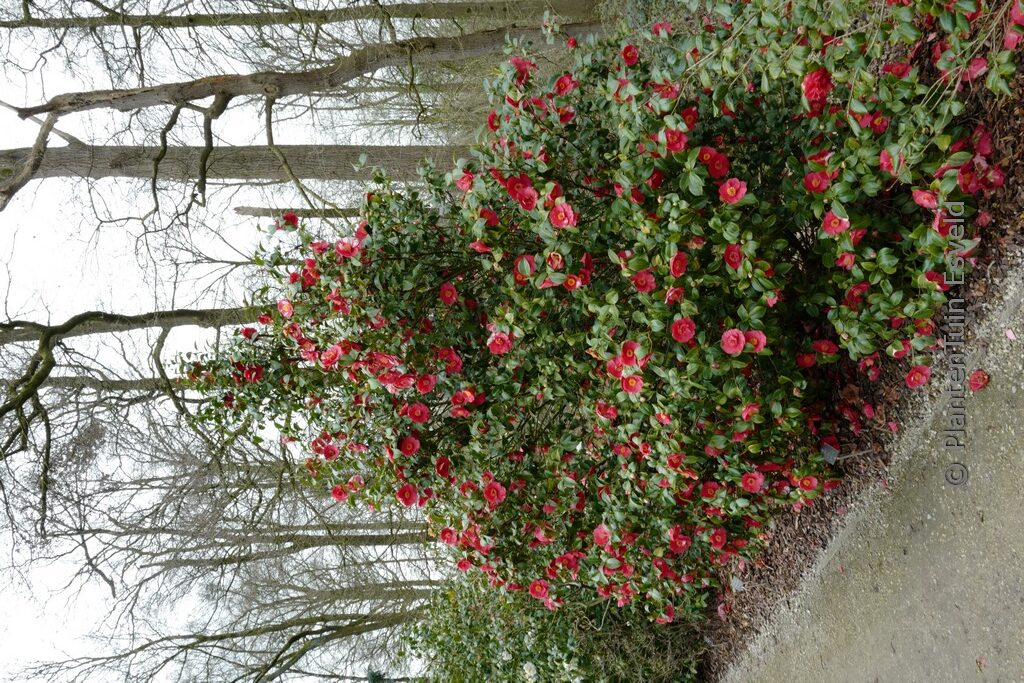 Grosser Strauch mitgefüllten Blüten. Pflanzenhöhe n. 10 Jahren 2,5 m. Die Blütenfarbe ist karminrot. Die Blütezeit ist März – April. Diese Pflanze ist winterhart. Volksname : Kamelie . Diese Pflanze hat die folgende Auszeichnung: AGM, Award of Garden Merit, 1993. Ist anwesend in unsere Pflanzenladen. Bitte sehen Sie im Aktuelle Vorrat.
