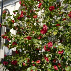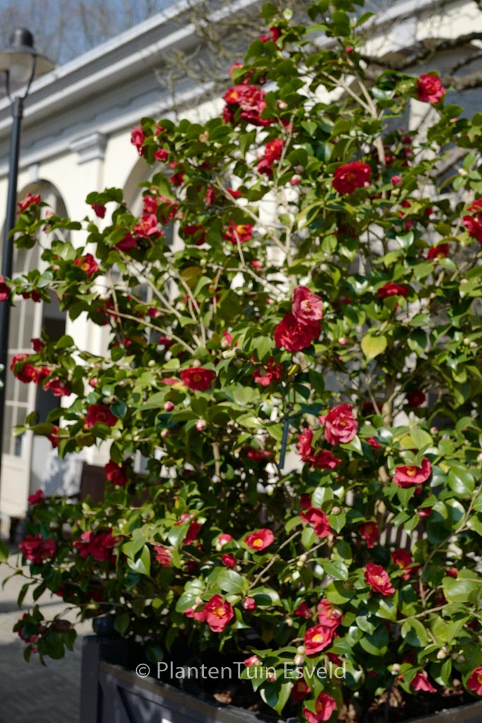 Halbgefüllte,farbkräftige Blüten. Pflanzenhöhe n. 10 Jahren 2 m. Die Blütenfarbe ist scharlachrot. Die Blütezeit ist Februar – April. Diese Pflanze ist winterhart. Anzahl pro Qm : 1. Volksname : Kamelie . Ist anwesend in unsere Pflanzenladen. Bitte sehen Sie im Aktuelle Vorrat.