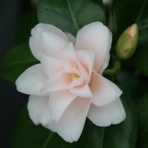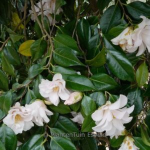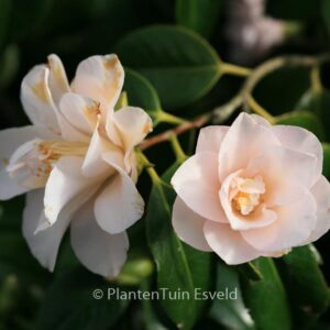 Alte, recht winterharte Sorte mit halbgefüllten Bltn. Pflanzenhöhe n. 10 Jahren 150 cm. Die Blütenfarbe ist hellrosa, fast weiss. Die Blütezeit ist Februar – März. Diese Pflanze ist winterhart. Volksname : Kamelie . Diese Pflanze hat die folgende Auszeichnung: AGM, Award of Garden Merit, 1993. Ist anwesend in unsere Pflanzenladen. Bitte sehen Sie im Aktuelle Vorrat.