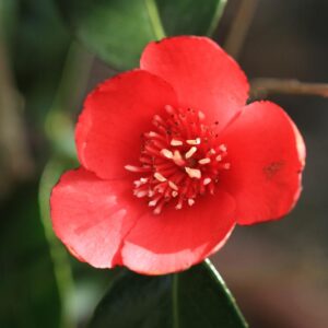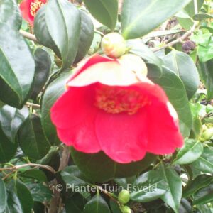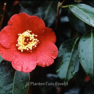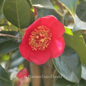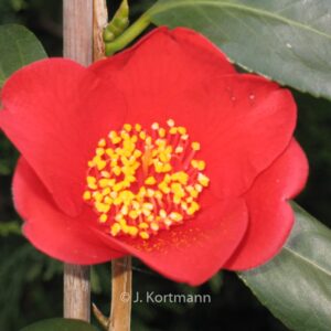 Ungefüllte, recht winterharte und wüchsige Sorte. Pflanzenhöhe n. 10 Jahren 200 cm. Die Blütenfarbe ist strahlend rot mit gelb. Die Blütezeit ist März – April. Diese Pflanze ist winterhart. Anzahl pro Qm : 1. Volksname : Kamelie . Ist anwesend in unsere Pflanzenladen. Bitte sehen Sie im Aktuelle Vorrat.