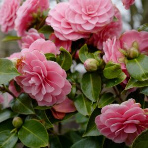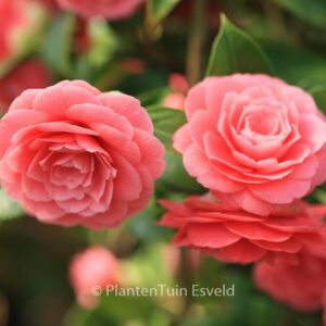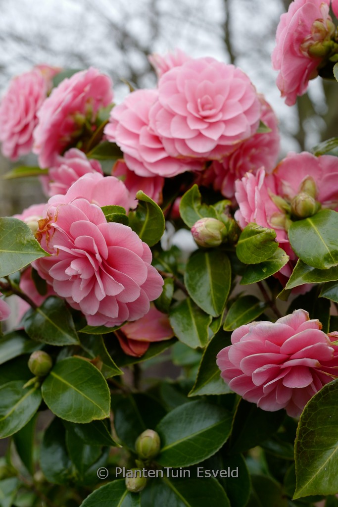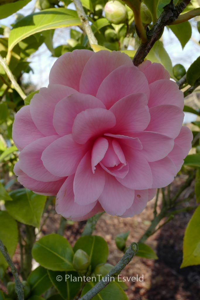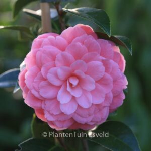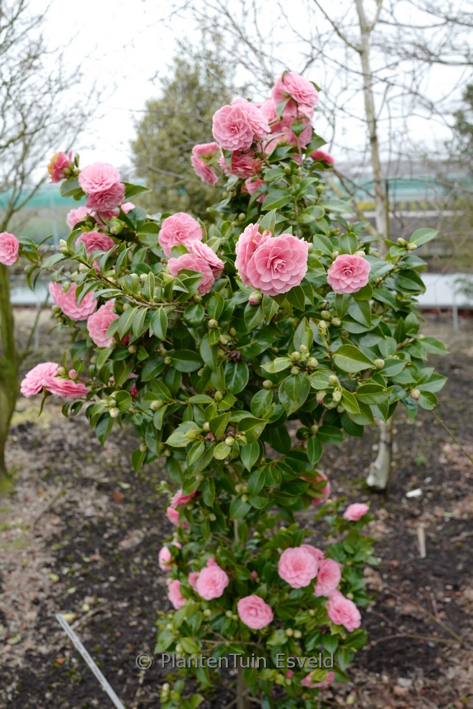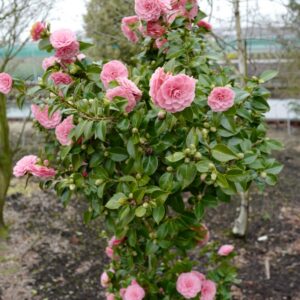 Sehr dicht gefüllt; Wuchs gutverzweigt und buschig. Pflanzenhöhe n. 10 Jahren 200 cm. Die Blütenfarbe ist hellrosa. Die Blütezeit ist Februar – April. Diese Pflanze ist winterhart. Volksname : Kamelie . Ist anwesend in unsere Pflanzenladen. Bitte sehen Sie im Aktuelle Vorrat.
