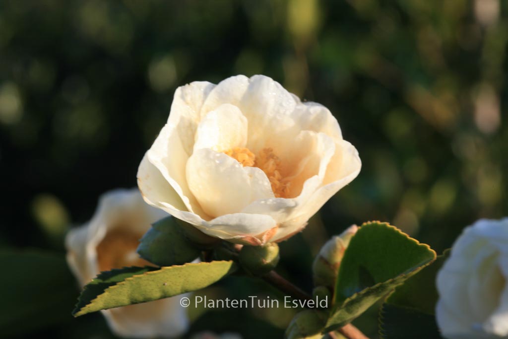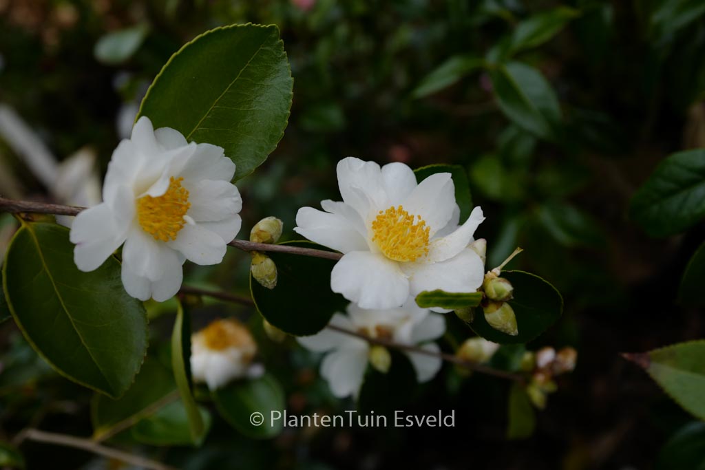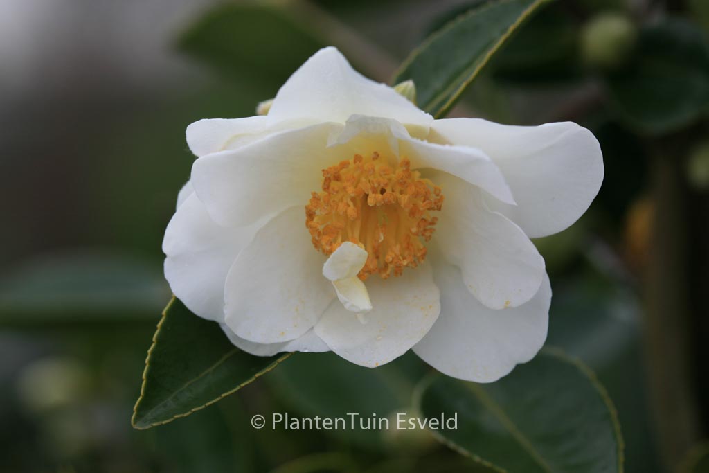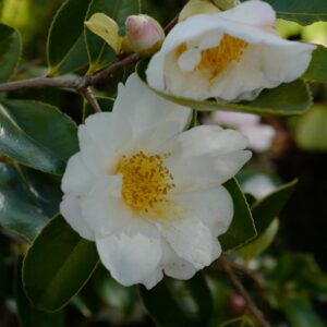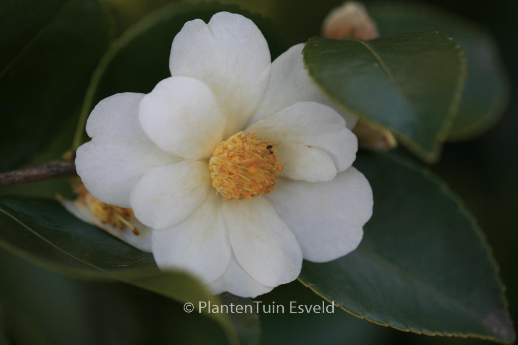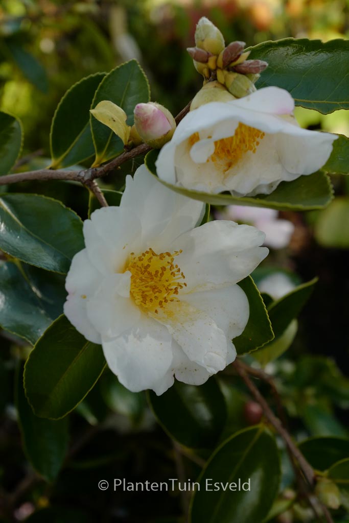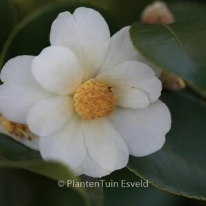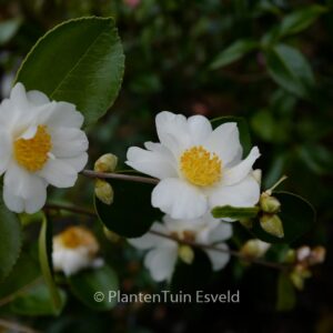 Ungefüllte Sasanqua-Sorte; Ackermann Hybride, duftend. Pflanzenhöhe n. 10 Jahren 20 cmm. Die Blütenfarbe ist weiss. Die Blütezeit ist Oktober – Dezember. Diese Pflanze ist nicht sehr winterhart. Anzahl pro Qm : 1. Ist anwesend in unsere Pflanzenladen. Bitte sehen Sie im Aktuelle Vorrat.