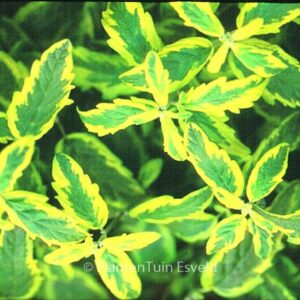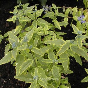 Blatt dekorativ gelb-grün panaschiert; Winterschutz!. Pflanzenhöhe n. 10 Jahren 125 cm. Die Blütenfarbe ist dunkelblau. Die Blütezeit ist August – September. Diese Pflanze ist nicht sehr winterhart. Anzahl pro Qm : 3. Volksname : Bartblume . Diese Pflanze hat die folgende Auszeichnung: AGM, Award of Garden Merit, 2007. Ist anwesend in unsere Pflanzenladen. Bitte sehen Sie im Aktuelle Vorrat.