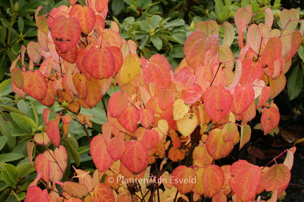 Kuchenbaum; fallendes Blatt duftet nach Karamell; gelbe Hfb. Pflanzenhöhe n. 10 Jahren 6 Meter. Die Blütenfarbe ist hellgrün. Die Blütezeit ist Mai. Diese Pflanze ist vollkommen winterhart. Anzahl pro Qm : 1. Volksname : Kuchenbaum Mögliche Alternativen : Cercidiphyllum japonicum ‚Boyd’s Dwarf‘. Wichtigster Unterschied: Cercidiphyllum japonicum ‚Boyd’s Dwarf‘ formt eine rondere Strauch. Cercidiphyllum japonicum ‚Herkenrode Dwarf‘. Wichtigster Unterschied: Cercidiphyllum japonicum ‚Herkenrode Dwarf‘ wächst rustiger und kompakt. Cercidiphyllum japonicum ‚Raspberry‘. Wichtigster Unterschied: Cercidiphyllum japonicum ‚Raspberry‘ starker duftend Herbstblatt. Cercidiphyllum japonicum sinense. Wichtigster Unterschied: Cercidiphyllum japonicum sinense Blatt etwas blauwgroener. Cercidiphyllum japonicum ‚Strawberry‘. Wichtigster Unterschied: Cercidiphyllum japonicum ‚Strawberry‘ starker duftend Herbstblatt. Diese Pflanze hat die folgende Auszeichnung: AGM, Award of Garden Merit, 1993. Ist anwesend in unsere Pflanzenladen. Bitte sehen Sie im Aktuelle Vorrat. . .
