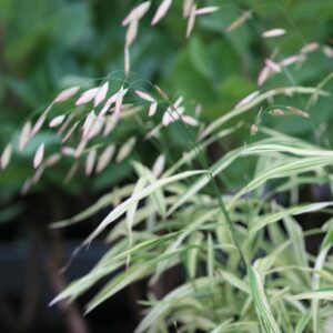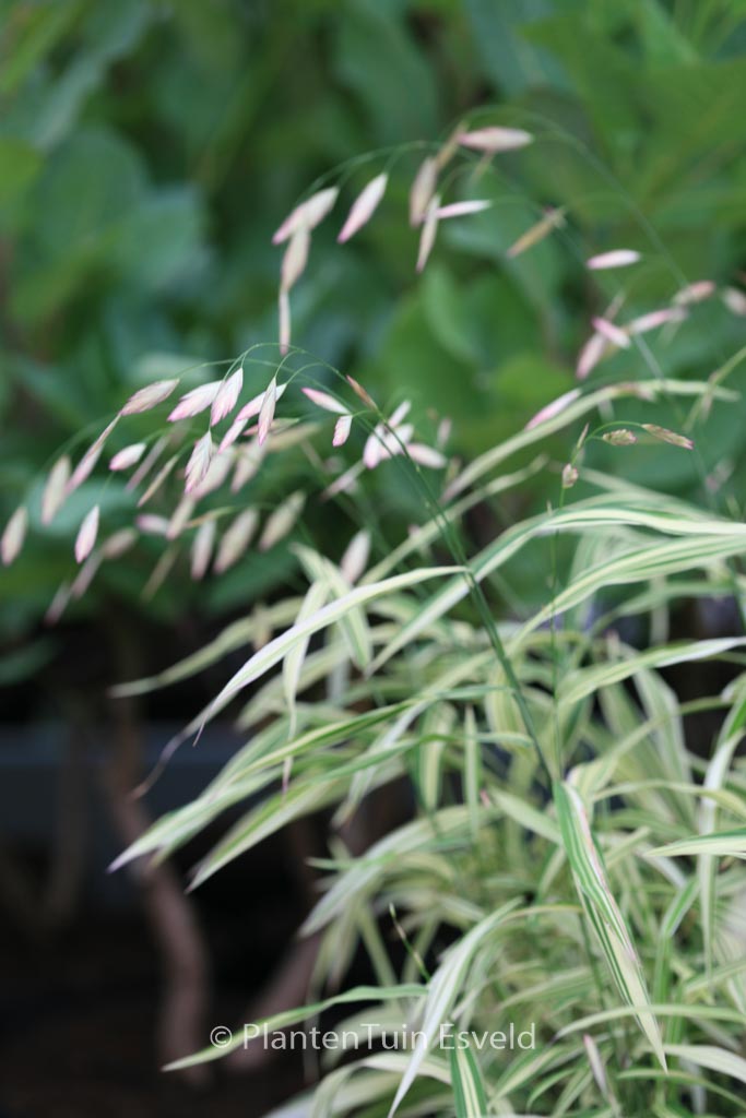Plattähren-Gras mit weisser Längsstreifung. Pflanzenhöhe rund 70 cm. Die Blütenfarbe ist hellbraun. Die Blütezeit ist August – Oktober. Diese Pflanze ist winterhart. Anzahl pro Qm : 5. Volksname : Plattährengras . Diese Pflanze hat die folgende Auszeichnung: Goldmedaille Fachbörse Plantarium 2009. . Nur auf Vorbestellung lieferbar.