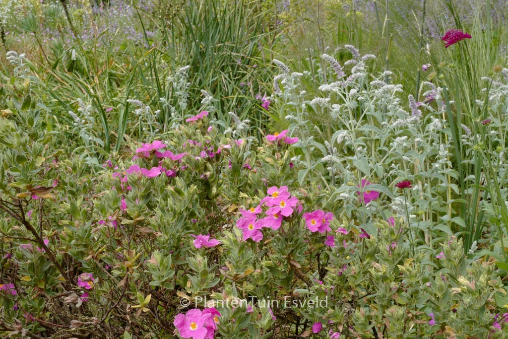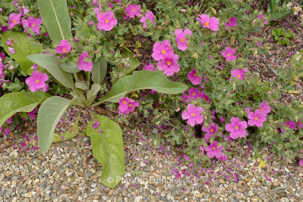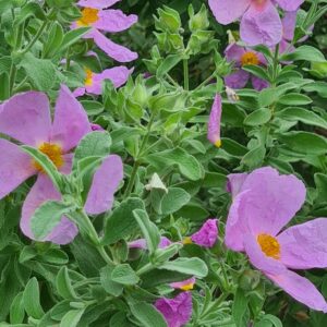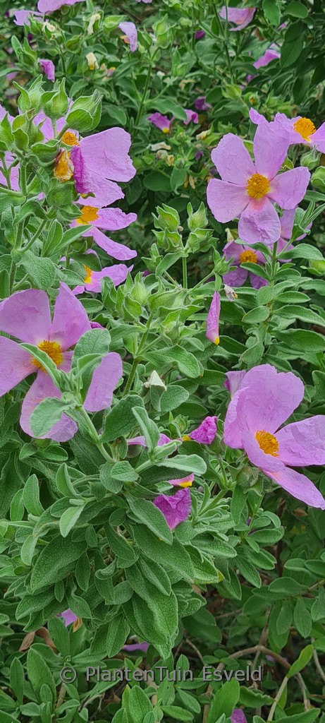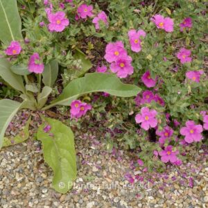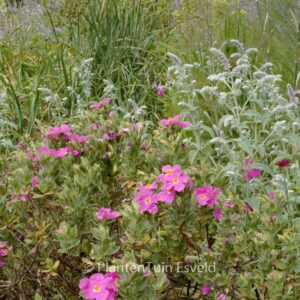 Blatt graugrün weissfilzig; reichblühend; buschig. Pflanzenhöhe n. 10 Jahren 100 cm. Die Blütenfarbe ist kräftig pink; gross. Die Blütezeit ist Mai – Juni. Diese Pflanze ist nicht sehr winterhart. Anzahl pro Qm : 2. Volksname : Zistrose . . Nur auf Vorbestellung lieferbar.