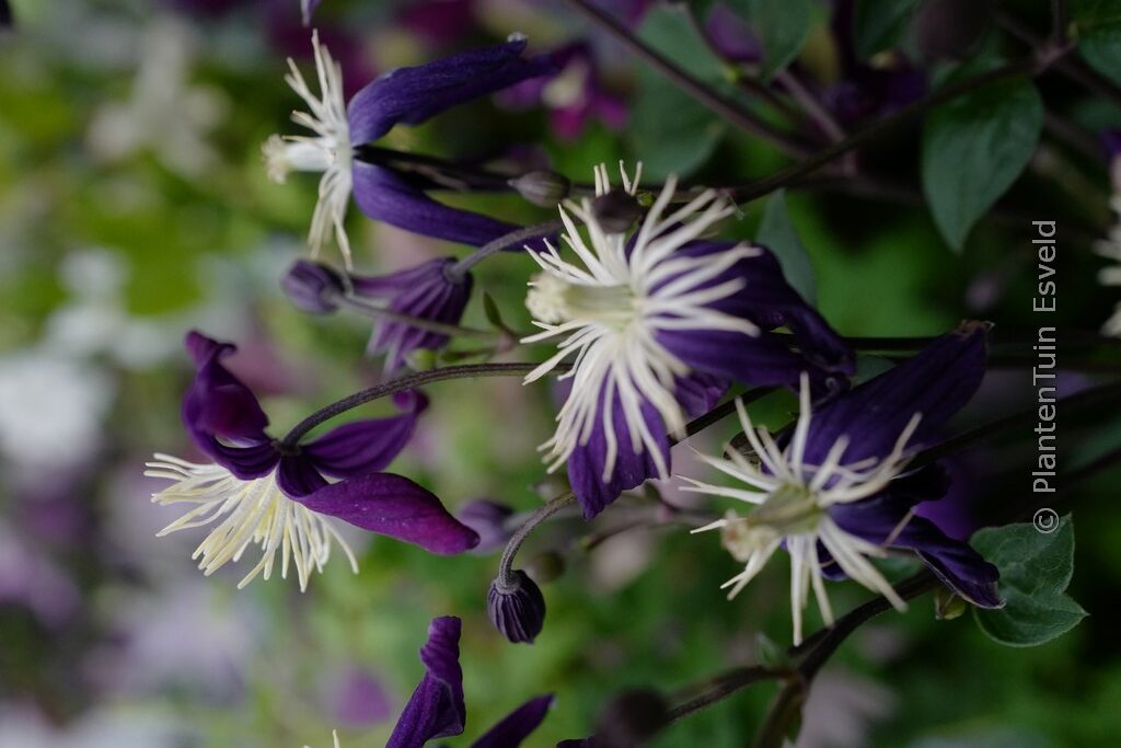 Kleine Sternblüten; auffallende gelbe Staubgefässe. Pflanzenhöhe n. 10 Jahren 1,5 meter. Die Blütenfarbe ist rotviolett / blauviolett. Die Blütezeit ist Juni – September. Diese Pflanze ist vollkommen winterhart. Anzahl pro Qm : 1. Volksname : Waldrebe . Ist anwesend in unsere Pflanzenladen. Bitte sehen Sie im Aktuelle Vorrat. .