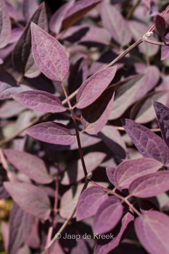 Staudige Sorte mitauffallend purpurrotem Laub. Pflanzenhöhe n. 10 Jahren 1,25 m. Die Blütenfarbe ist weiss. Die Blütezeit ist Juni – Juli. Diese Pflanze ist vollkommen winterhart. Anzahl pro Qm : 1. Volksname : Purpur-stauden-waldrebe . . Nur auf Vorbestellung lieferbar.