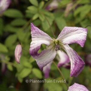 Recht neue Viticella-Sorte mit kleinen Sternblüten. Pflanzenhöhe n. 10 Jahren 2 meter. Die Blütenfarbe ist weiss mit violettem Rand. Die Blütezeit ist Juni – September. Diese Pflanze ist winterhart. Anzahl pro Qm : 2. Volksname : Waldrebe . Ist anwesend in unsere Pflanzenladen. Bitte sehen Sie im Aktuelle Vorrat. . . .