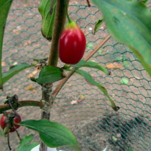 Grosse, birnenförmige, dunkelrote Früchte. Pflanzenhöhe n. 10 Jahren 3 meter. Die Blütenfarbe ist gelb. Die Blütezeit ist Februar – März. Diese Pflanze ist winterhart. Anzahl pro Qm : 1. Volksname : Kornelkirsche . . Nur auf Vorbestellung lieferbar.