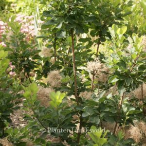 Blatt grün; im Herbst rot bis gelb; aufrecht und buschig. Pflanzenhöhe n. 10 Jahren 2 meter. Die Blütenfarbe ist rosarot bis pflaumenfarben. Die Blütezeit ist Juli – August. Diese Pflanze ist winterhart. Volksname : Perückenstrauch . Ist anwesend in unsere Pflanzenladen. Bitte sehen Sie im Aktuelle Vorrat. . .
