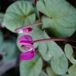 Garten-Frühlings-Alpenveilchen; geht in Sommerruhe. Pflanzenhöhe n. 10 Jahren 10 cm. Die Blütenfarbe ist magenta. Die Blütezeit ist Februar – März. Diese Pflanze ist vollkommen winterhart. Anzahl pro Qm : 15. Volksname : Frühlings-alpenveilchen . . Nur auf Vorbestellung lieferbar.