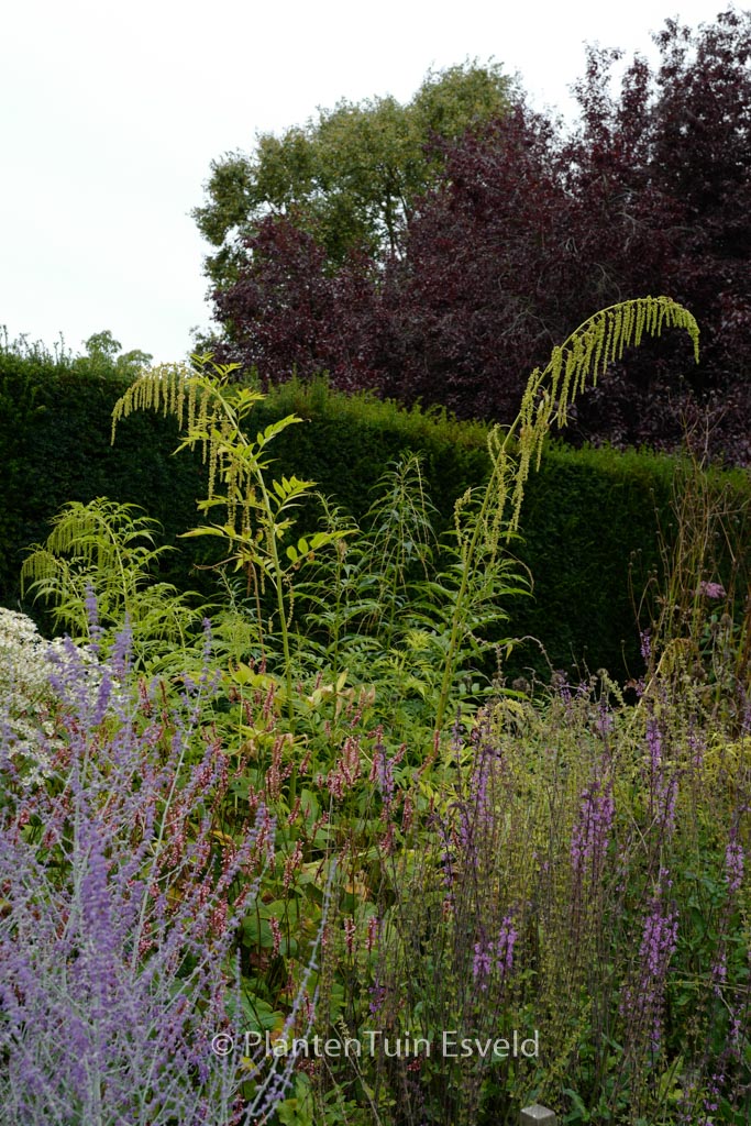 Scheinhanf; imposante,horstige Solitär-Staude. Pflanzenhöhe rund 2 m. Die Blütenfarbe ist grünlich-gelb. Die Blütezeit ist Juli – August. Diese Pflanze ist winterhart. Anzahl pro Qm : 3. Volksname : Streichkraut . . Nur auf Vorbestellung lieferbar.