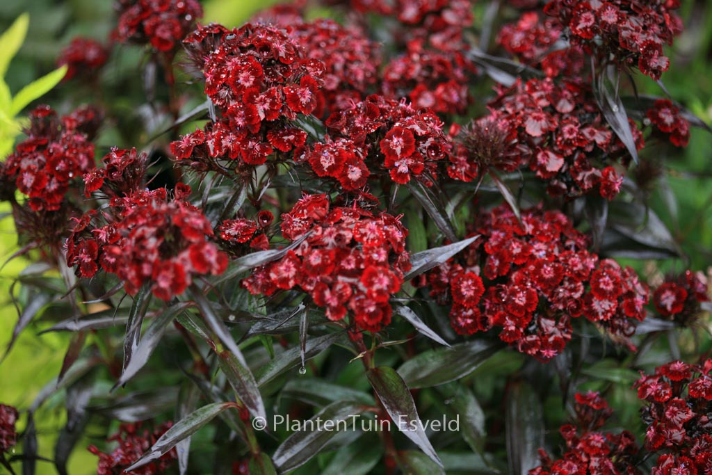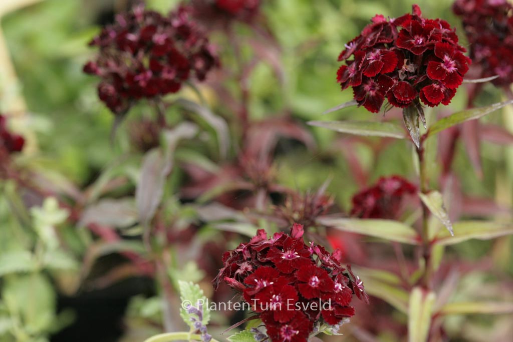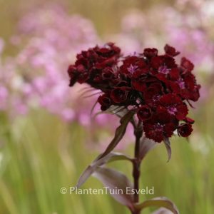 Zweijährige, duftendeBartnelke; prima Bienenweide. Pflanzenhöhe rund 35 cm. Die Blütenfarbe ist tief schwarzrot. Die Blütezeit ist Juni – August. Diese Pflanze ist winterhart. Anzahl pro Qm : 9. Volksname : Bartnelke . Diese Pflanze hat die folgende Auszeichnung: AGM, Award of Garden Merit, 1993. . Nur auf Vorbestellung lieferbar.