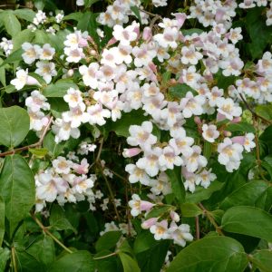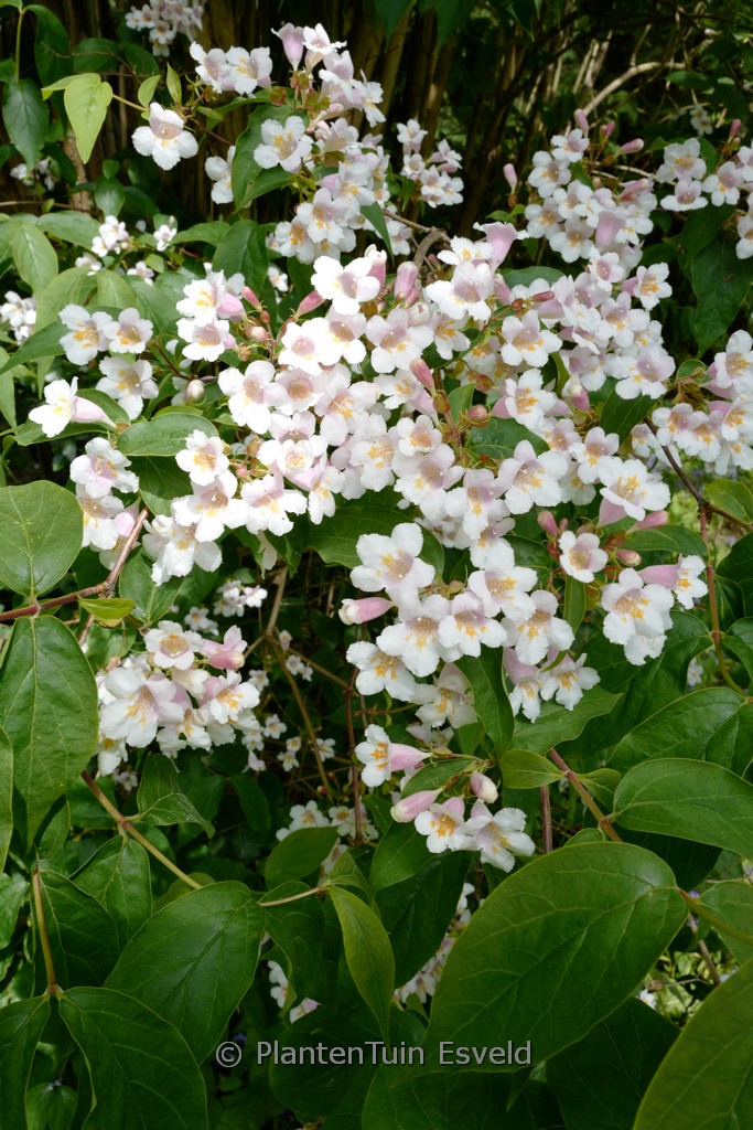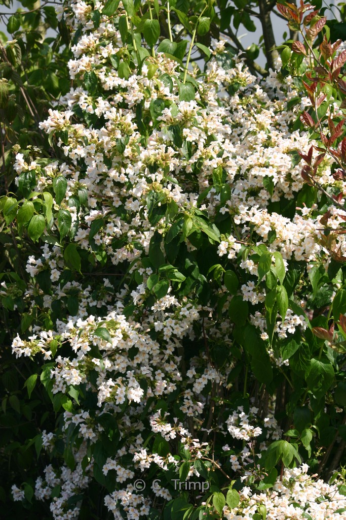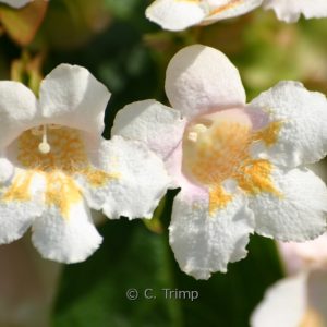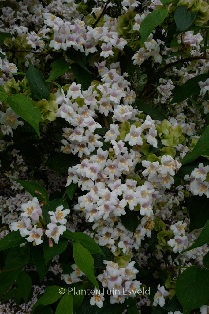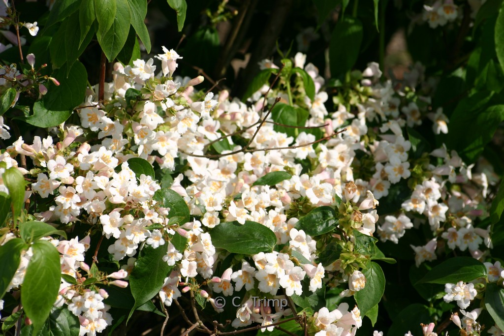 Ähnelt einer grossblumigen Weigelie; Wuchs überhgd. Pflanzenhöhe n. 10 Jahren 3 meter. Die Blütenfarbe ist hellrosa mit weiss/gelb. Die Blütezeit ist Mai. Diese Pflanze ist winterhart. . Diese Pflanze hat die folgende Auszeichnung: AGM, Award of Garden Merit, 2002. . Nur auf Vorbestellung lieferbar.