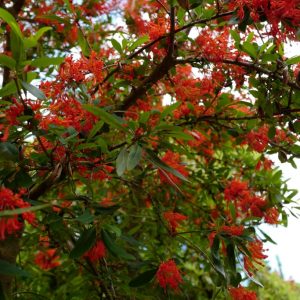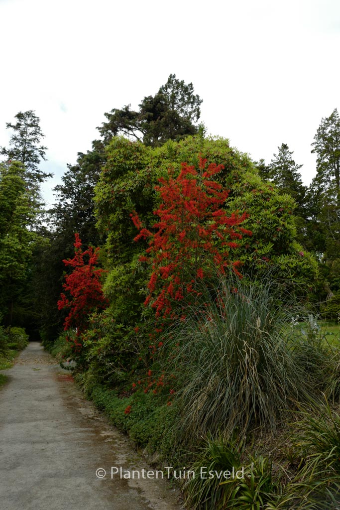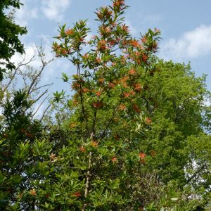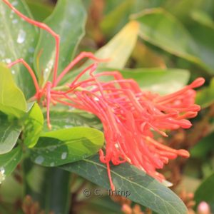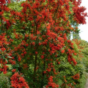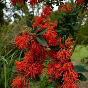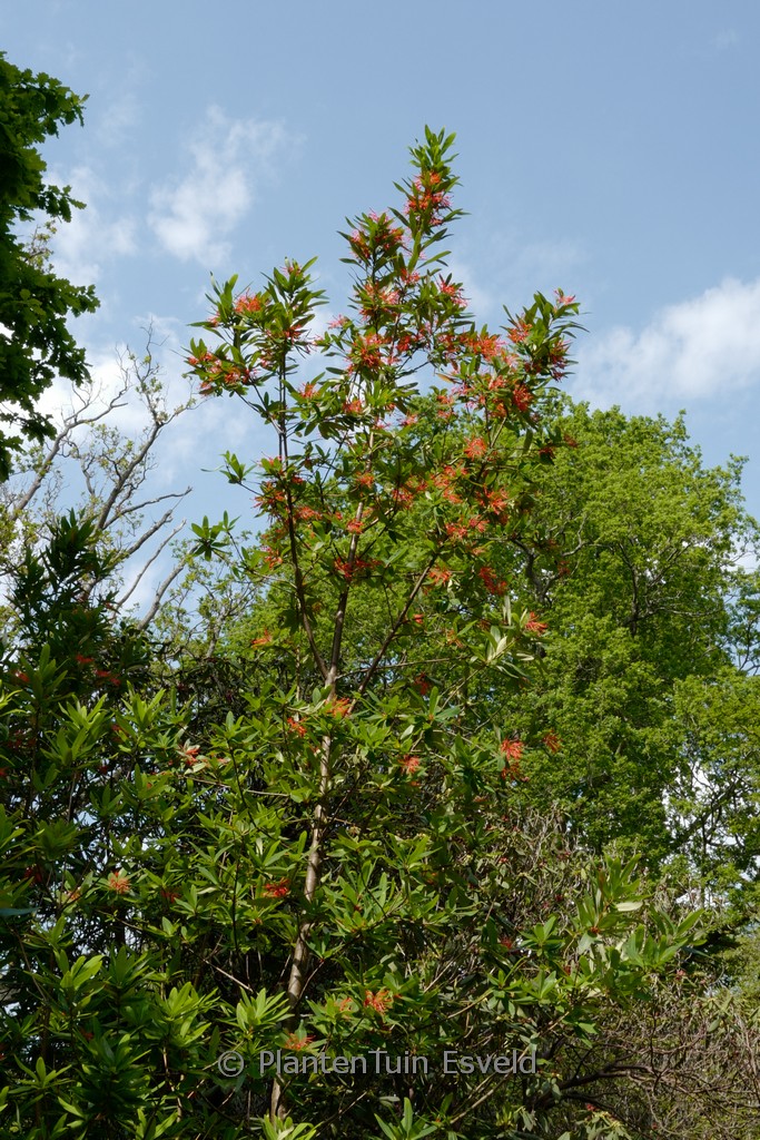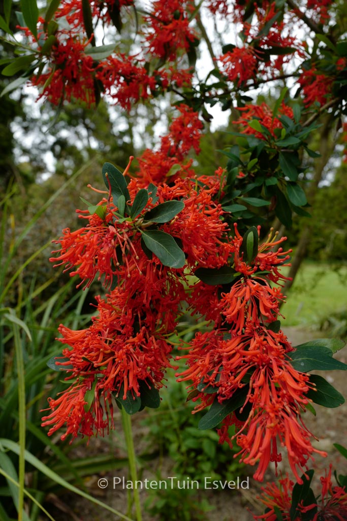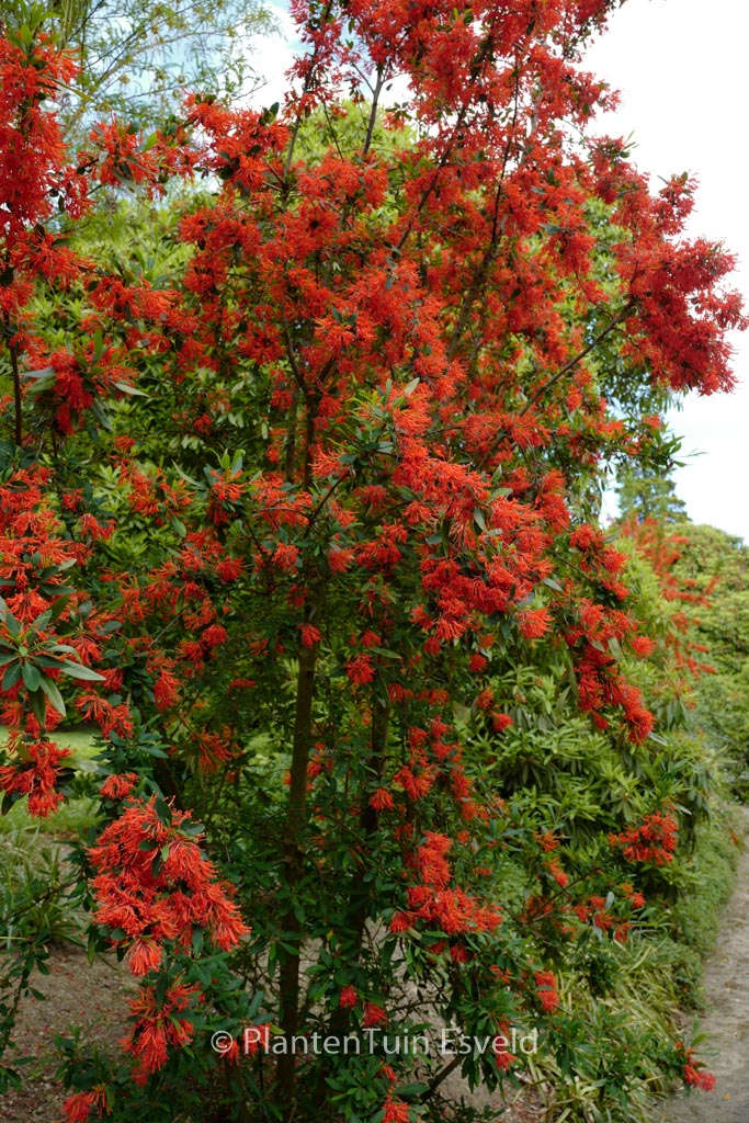 Kleiner, immergrüner Baum aus Chile; Proteaceae. Pflanzenhöhe n. 10 Jahren 4 Meter. Die Blütenfarbe ist hellrot. Die Blütezeit ist Juni – Juli. Diese Pflanze ist nicht sehr winterhart. Anzahl pro Qm : 1. Volksname : Chilenischer feuerstrauch . . Nur auf Vorbestellung lieferbar.